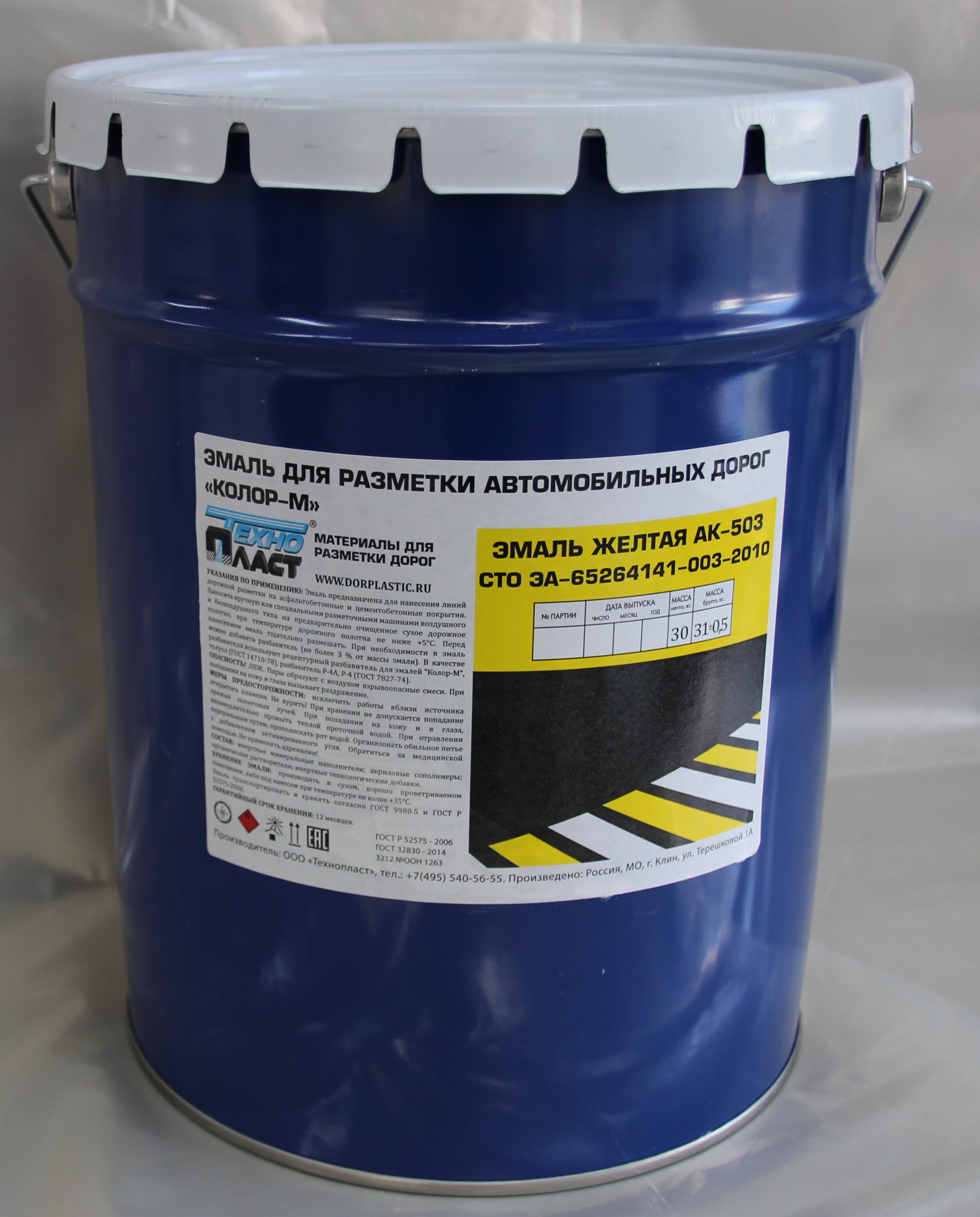Эмаль краска для дорожной разметки АК-503 Желтая Фасовка 30 кг в Дальнегорске