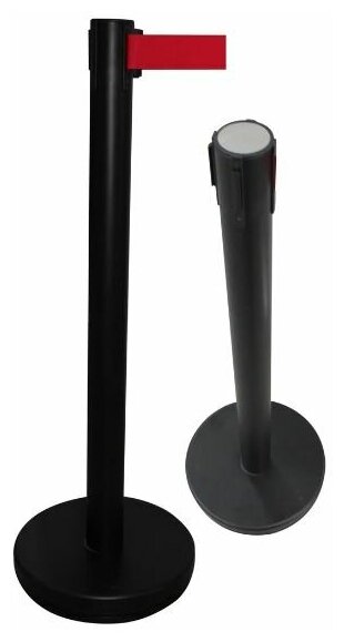 Ленточное ограждение барьер столбик черная стойка с красной лентой 3 метра в Дальнегорске