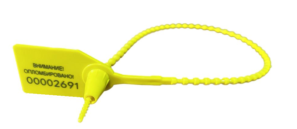 Контрольная пломба с гибким элементом универсального назначения. Применяется для опломбирования контейнеров торговли на авиалиниях, контейнеров бортового питания, морских и ж/д контейнеров, автомашин, инкассаторских сумок, сейфов, складских помещений, дверей, шкафов, различных типов тары.