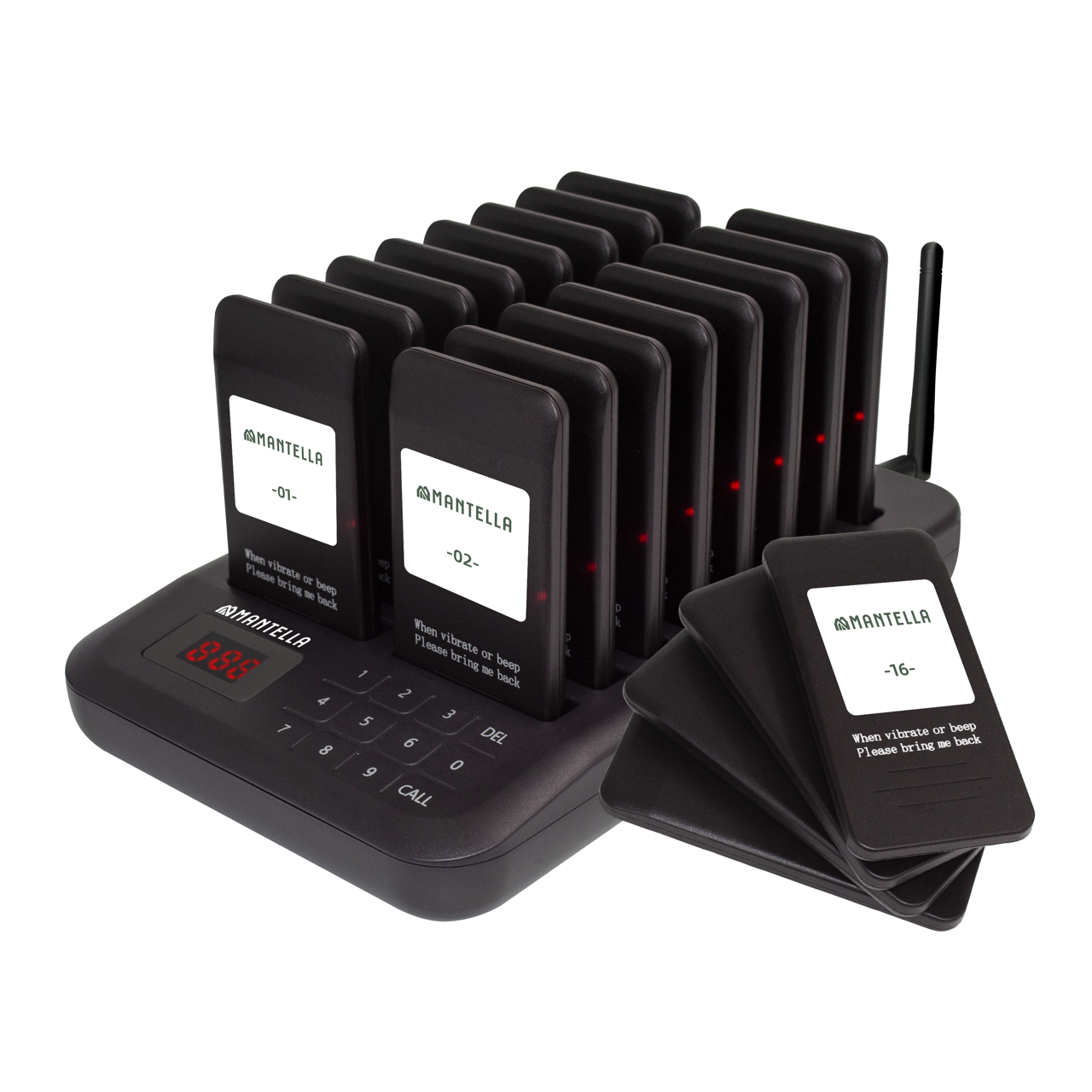 Максимальная емкость – 16 пейджеров Совмещен с зарядным устройством пейджеров