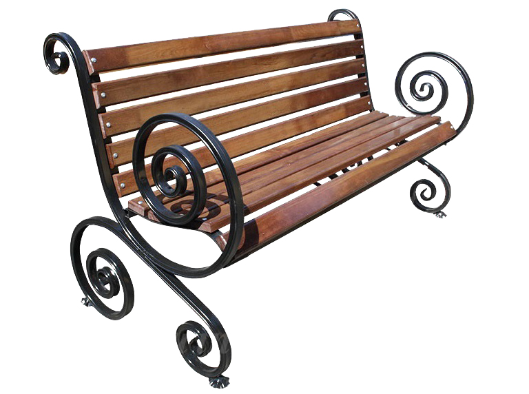 Кованая парковая скамья - Французская лоза большой вензель, выполнена из металической профильной трубы диаметром 30 х 30 мм, выгнутой на специальном оборудовании с применением холодной художественной ковки. Металические части скамейки тщательно обработаны и окрашены в черный цвет. Деревянный настил (рейка 30х70х1500мм), изготовлена из хвойных пород древесины класса А, с последующей обработкой и нанесением морилки темных или светлых тонов, а так же покрытием яхтным лаком. -
